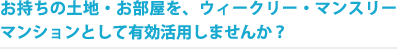 お持ちの土地・お部屋を、ウィークリー・マンスリーマンションとして有効活用しませんか?