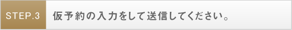 仮予約情報入力フォームへ〉〉をクリックして、仮予約情報を入力して送信してください。