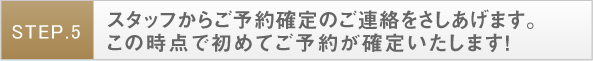 スタッフからご予約確定のご連絡をさしあげます。この時点で初めてご予約が確定いたします!