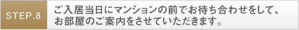 ご入居当日にマンションの前でお待ち合わせをして、お部屋のご案内をさせていただきます。